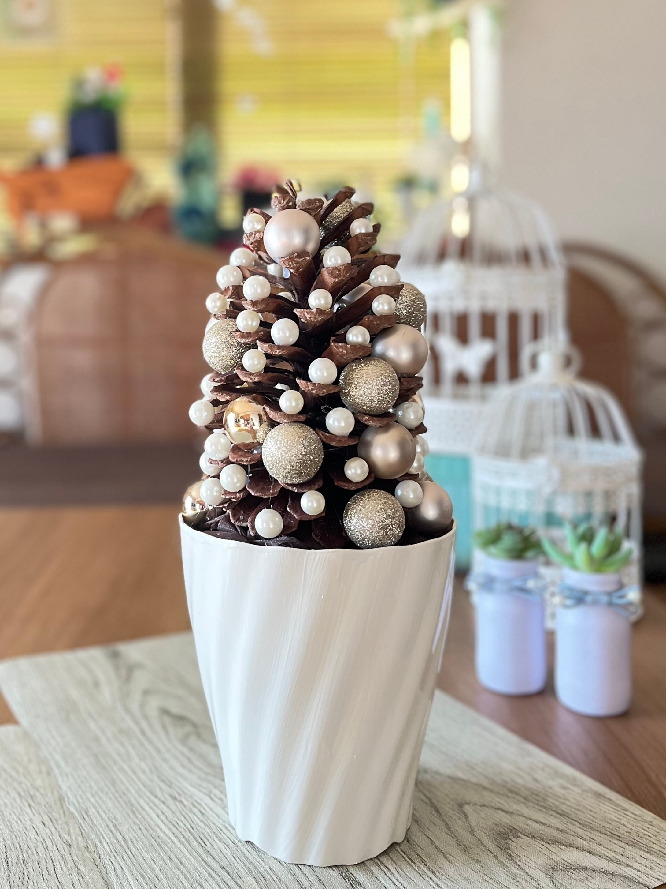 このシャンパンゴールドのオーナメントボールとホワイトパールの大王松ツリーは、自分へのご褒美はもちろん、大切な方への感謝や祝福の気持ちを込めた贈り物にもぴったりです。特別な瞬間を祝うために、友人や家族へのギフトとして選ぶことで、喜びを共有することができます。